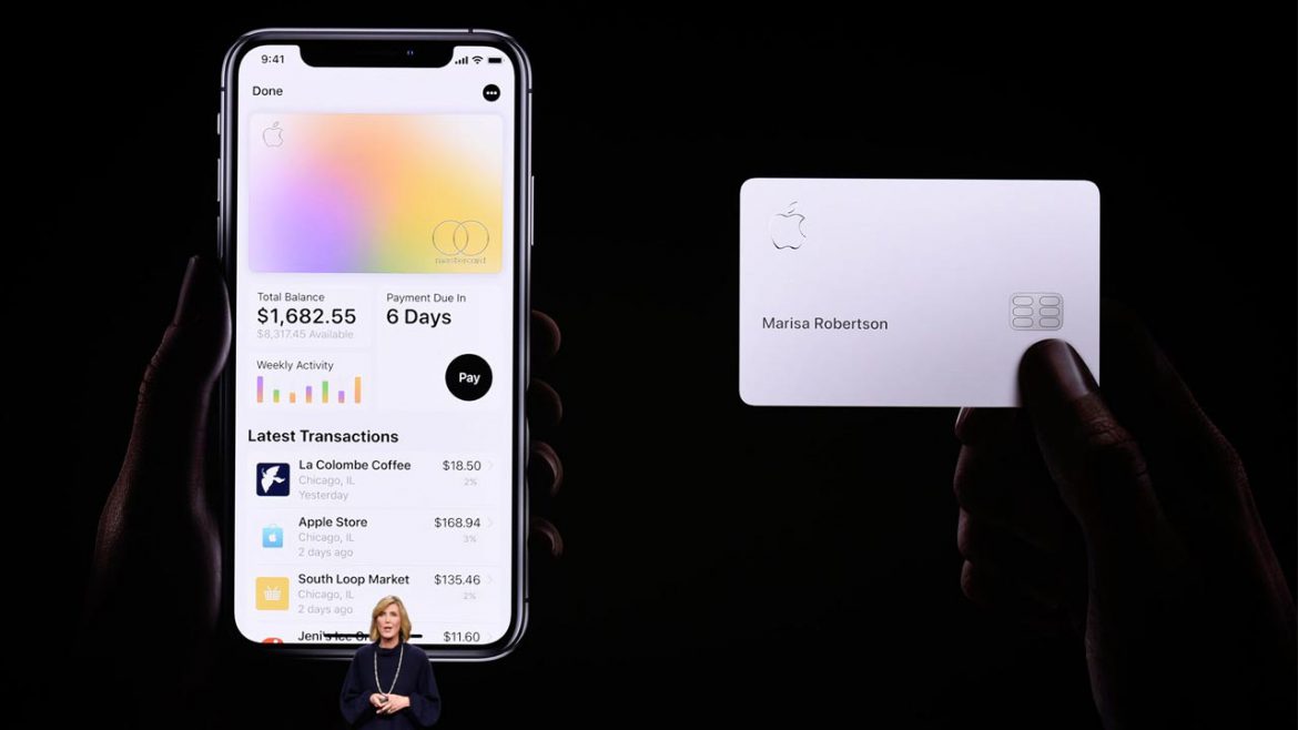 Apple Card đã được công bố trong sự kiện Show Time của Apple vào ngày 25/3/2019, tại Nhà hát Steve Jobs ở Cupertino, California. Đây là thẻ tín dụng đầu tiên trên thiết bị di động được tích hợp chặt chẽ vào ứng dụng Wallet iPhone và cung cấp các lợi ích hoàn lại tiền độc quyền cho các giao dịch mua liên quan đến Apple.