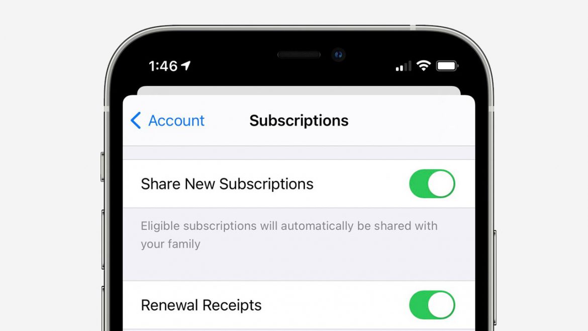 Phần Cài đặt trên App Store hiện có tính năng “Chia sẻ đăng ký mới” được bật tự động cho những người sử dụng Chia sẻ trong gia đình để cho phép người dùng chia sẻ đăng ký với các thành viên trong gia đình. Bạn cũng có thể tắt chia sẻ đăng ký cho một ứng dụng cụ thể.