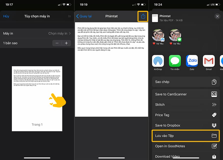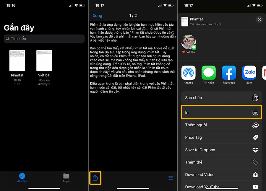 Với cách này chúng ta sử dụng công cụ In có sẵn trên iPhone, iPad của bạn mà không cần phải cài đặt thêm ứng dụng khác của bên thứ ba.