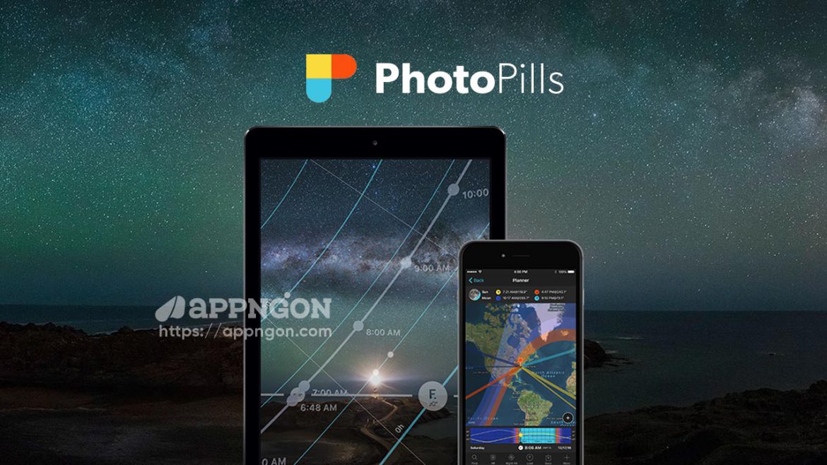 PhotoPills là một trong những ứng dụng được ưa chuộng nhất trong nhiếp ảnh thiên văn. PhotoPills có thể giúp nhiếp ảnh gia lên kế hoạch, tìm kiếm địa điểm đẹp, cho biết khi nào sẽ có bình minh, hoàng hôn hay đưa gợi ý thời điểm chụp cảnh sao đêm, cảnh cực quang, bầu trời… xét theo từng vị trí địa lý.