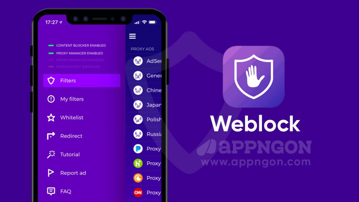 Weblock là giải pháp chặn quảng cáo số 1 cho iOS ra đời từ năm 2012 với hơn 750.000 lượt tải xuống, mang đến giải pháp chặn quảng cáo trong các ứng dụng, trên các trang web và hỗ trợ việc thống kê theo dõi tình trạng sử dụng internet.